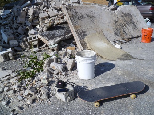 This was the third attempt at tryn to get this shred-able . Brett was up for the weekend and I said, this thing was awful yesterday, why don’t we look for fast curing crete today.. Home Depot is right up the street, I had all the tools and buckets still in the car.Brett was like, why not.