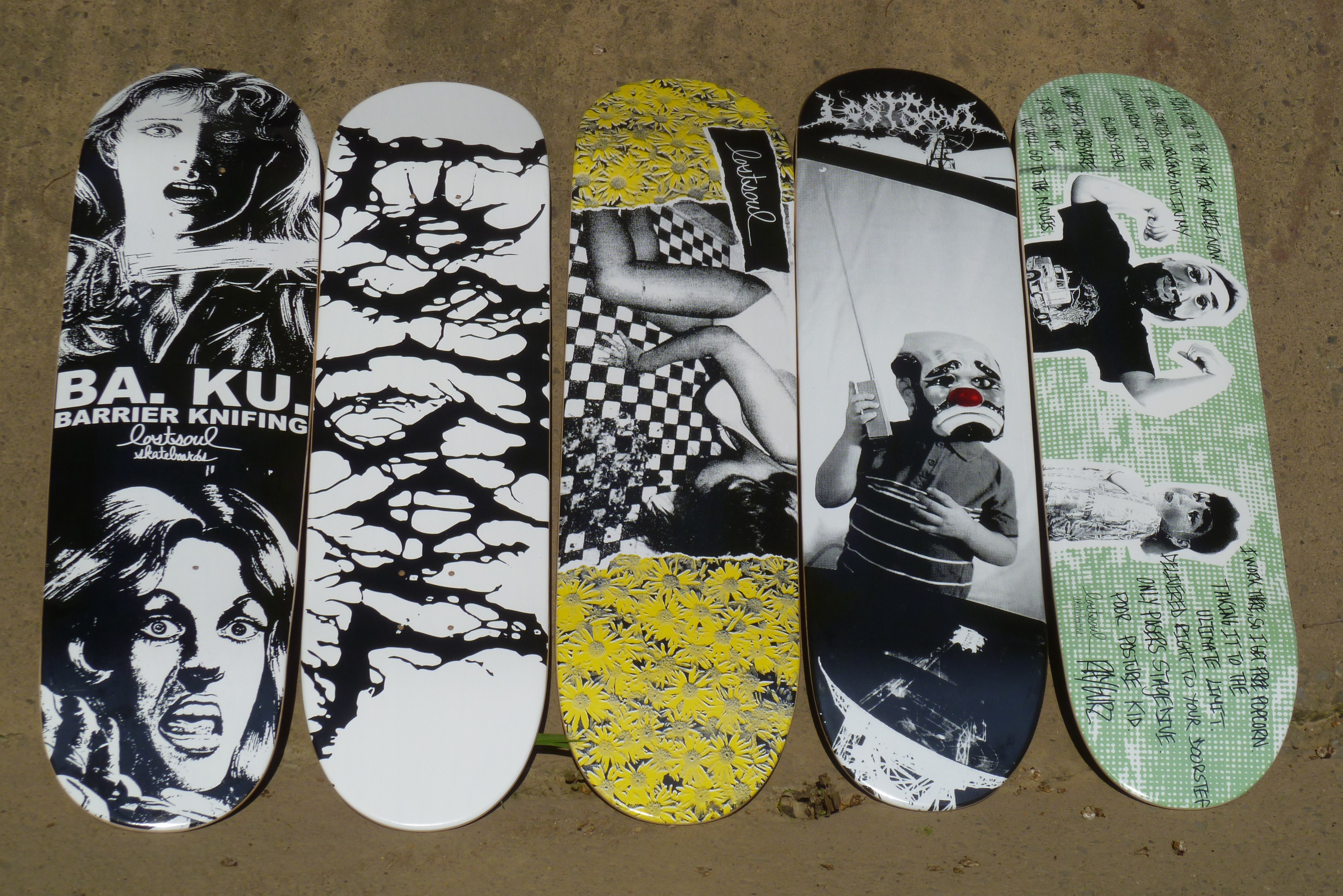 LS logo deck , Teen Puker deck, Clown Kid deck, Ray Gurz Muscle deck
