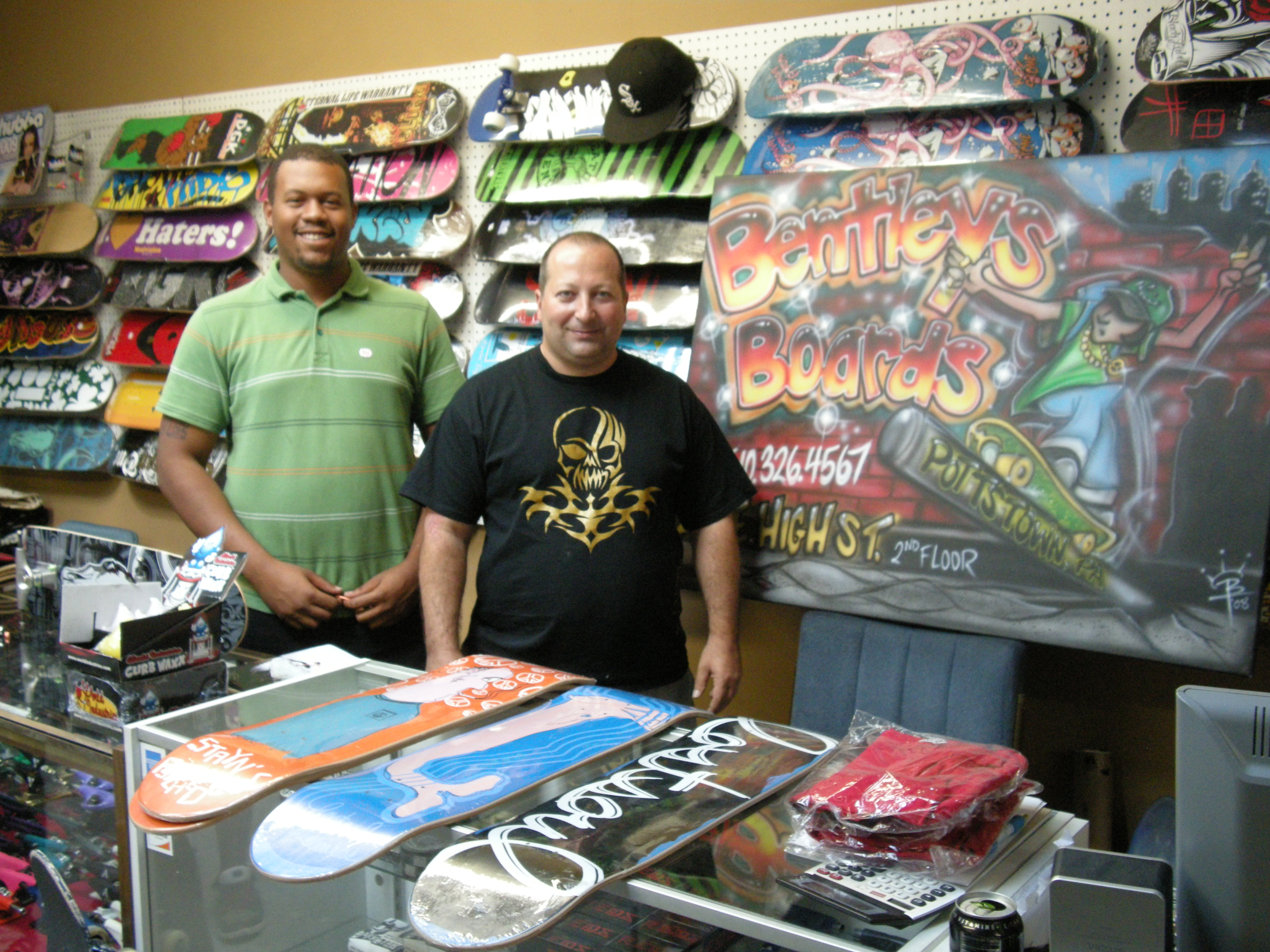 nate(owner) and todd at BENTLEY'S BOARDS in Pottstown, Pa